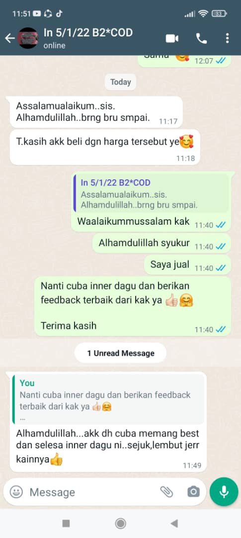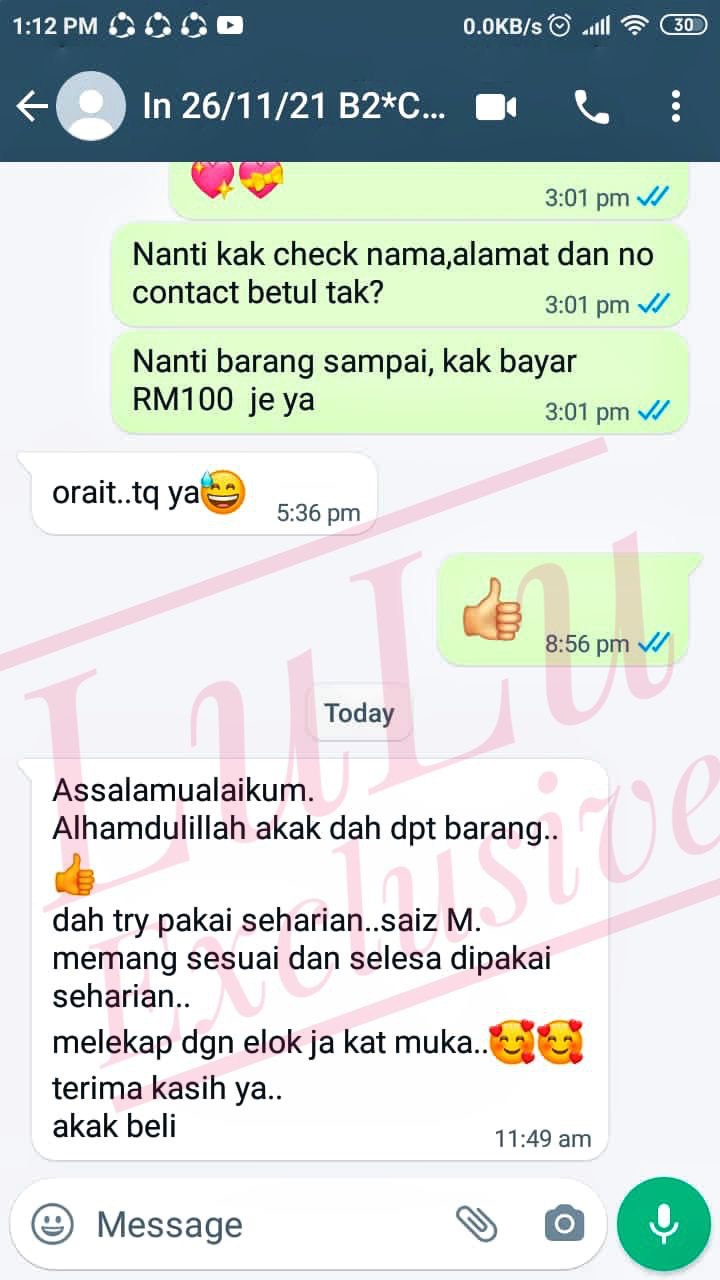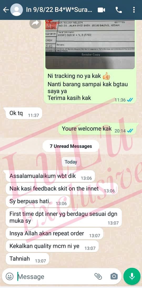 √ Pelanggan perlu poskan semula inner yang hendak tukar kepada kami dengan kos penghantaran ditanggung sendiri.
